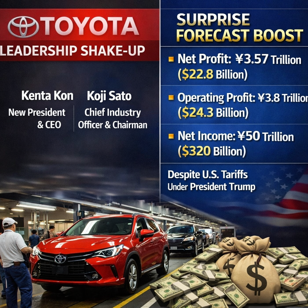 Toyota Motor appoints CFO Kenta Kon as CEO from April, shifting Koji Sato to vice chairman. The move prioritizes profitability and execution as Toyota lifts profit forecasts, maintains strong hybrid-led sales, and extends its global sales lead over Volkswagen.